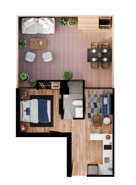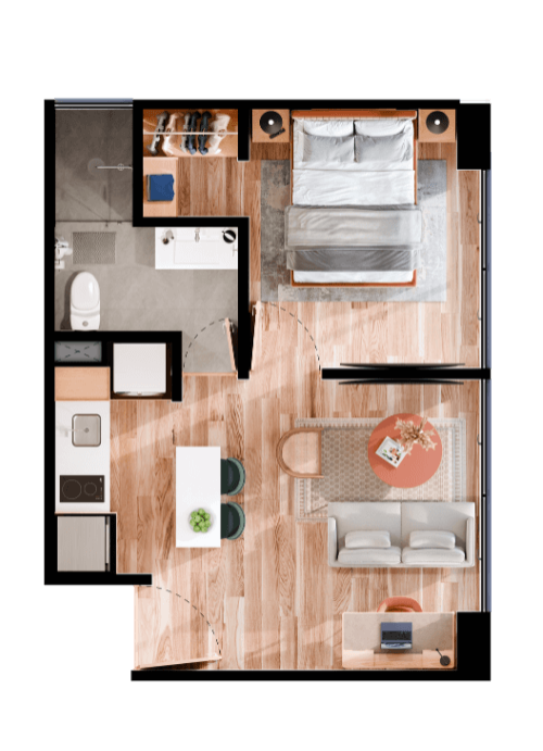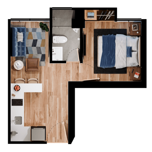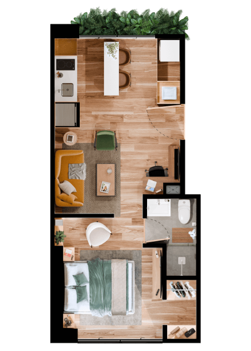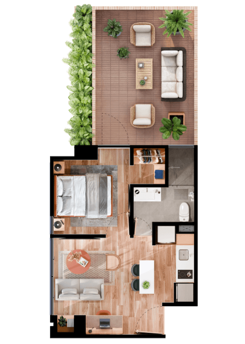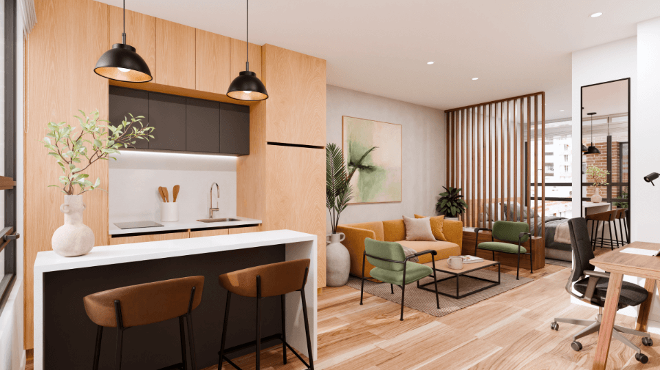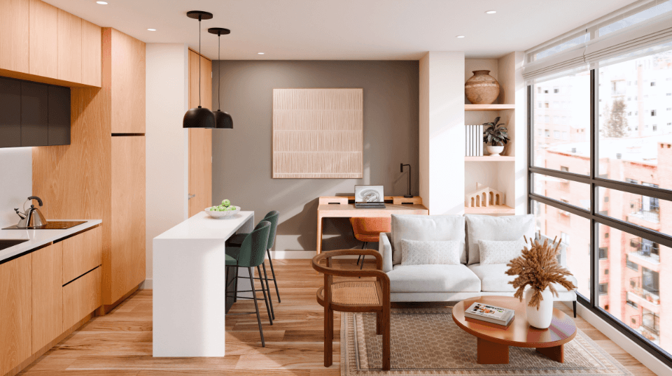 El formato compacto (29–37 m²) es altamente demandado en renta ejecutiva y media estancia. La ubicación en estrato 6 respalda la ocupación y valorización.